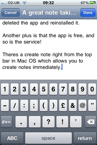 Only things to bare in mind is that you can't edit rich text notes on the iPhone, though it still lets you append. Also, I'd forgotten my password, so asked for a password reset. But then this made the iPhone app crash, because it now had invalid login info. To resolve this, I deleted the app and reinstalled it.